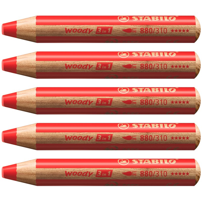 Multi-Talented Pencil - STABILO woody 3 in 1 - Pack of 5 - STABILOred