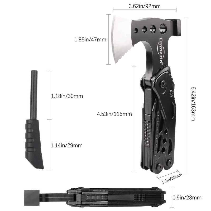 Multi Tool Axe, Embedo Foldable 15 in 1 Multitool Survival Equipment, Gift for Birthday/Father’s Day/Valentines,Gadgets for Men Outdoor, Camping, Hiking, Simple Repair
