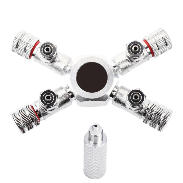 1、Use single cylinder and split to different outlets. There are 5 types of CO2 Splitter to choose from, easy to meet different people's needs 2、The extension rod with anti‑slip design and inside premium rubber gasket with good air‑tightness for ensuring its security 3、Each outlet is equipped with an individual needle valve allowing precise regulation of CO2 flow. 4、Made of aluminum alloy and stainless steel material, which is anti‑corrosion and anti‑oxidation, light weight and durable. 5、Including a pressure gauge connector for conveniently using with the CO2 distributor to control the pressure.