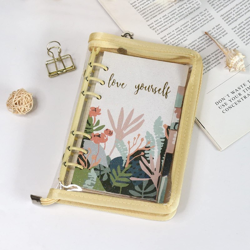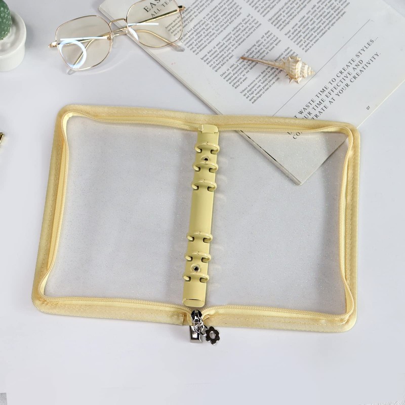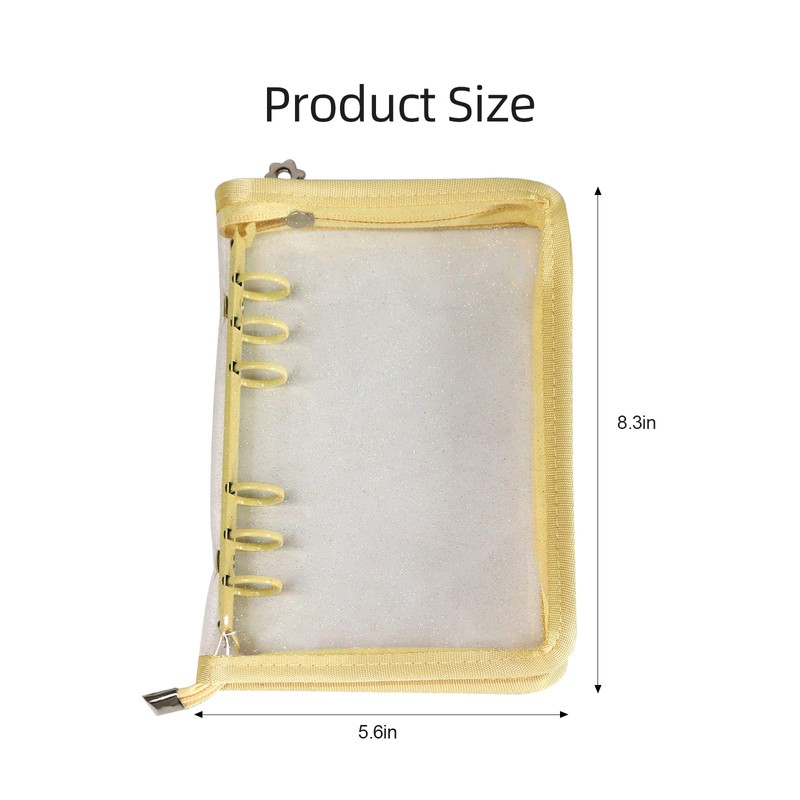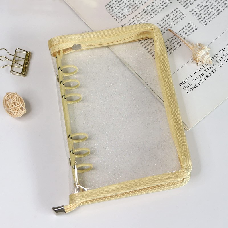 MultiBey A6 Binder 6 Ring Binder Cover Clear PVC Notebook Shell with Zipper, Sparkling Budget Binder for Cash Budget System, Journaling, Planner (8.2'' x 5.5'', Yellow)