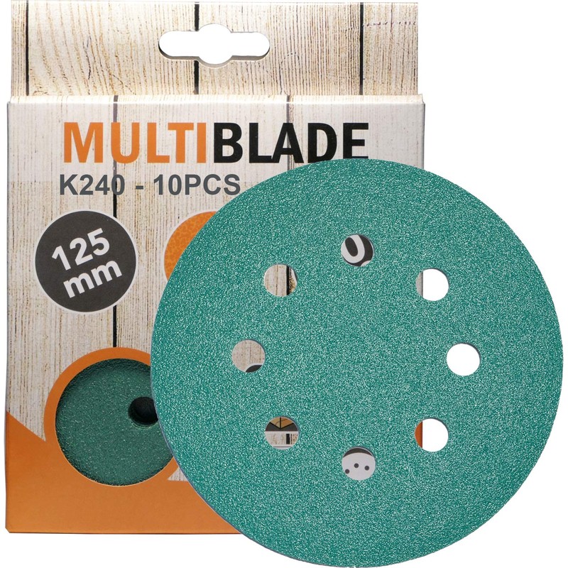 Multiblade Professional Velcro Sanding Discs 125 mm, Pack of 10, Grit 240, 8 Holes, for Wood and Metal, Professional Quality, for Random Orbital Sanders, Rotary Sander
