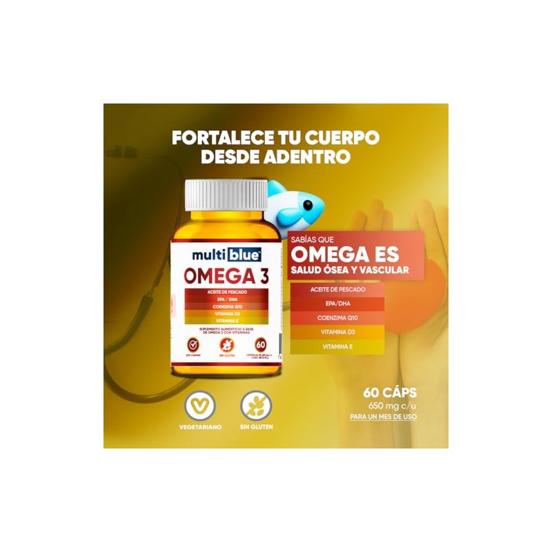 MultiBlue - MultiBlue - Omega 3 Salmon Oil 60 Capsulas | Con Aceite de Pescado, EPA, DHA, CoQ10, Vitamina D3 y E | Sin Gluten, 100% Naturales, Libres de OMG | Certificado GMP | 2 caps diarias, 1 mes - Sabor Limon. 💯 Autenticidad y máxima durabilidad comprobadas. Materiales de alta gama y acabados premium. ⭐ Miles de reseñas positivas. Ideal para quienes buscan lo mejor en calidad y estilo. Producto auténtico con satisfacción total asegurada. ¡No te quedes sin el tuyo y aprovecha esta oportunidad única!