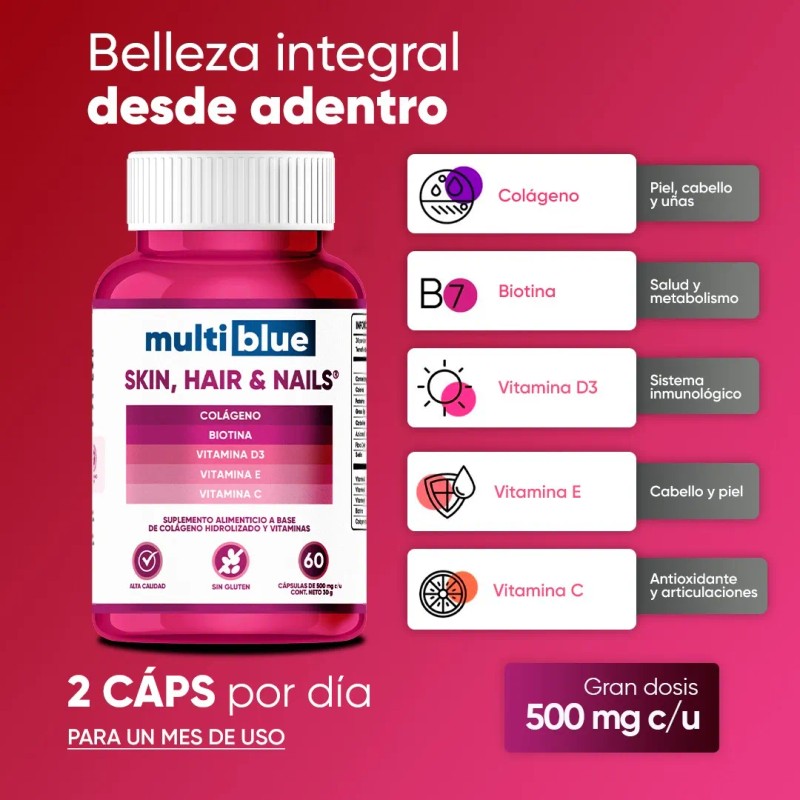 Multiblue Strong Core es un suplemento alimenticio en cápsulas, formulado con una combinación de Magnesio, Colágeno y Vitaminas para proporcionar un apoyo integral a la salud ósea, muscular y articular. Este producto está diseñado para quienes buscan fortalecer su estructura corporal, mejorar la flexibilidad y contribuir a la salud de sus tejidos conectivos, lo que lo hace ideal para deportistas, personas activas o aquellos que desean mantener la movilidad y la fuerza a medida que envejecen.