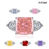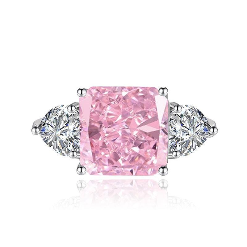 Multicolor Ice Flower Cut Square CZ Adjustable Ring, 10*10mm 8A Main Cubic Zirconia, Two Heart Side CZ, Dainty Luxe - Color: Bright Red CZ