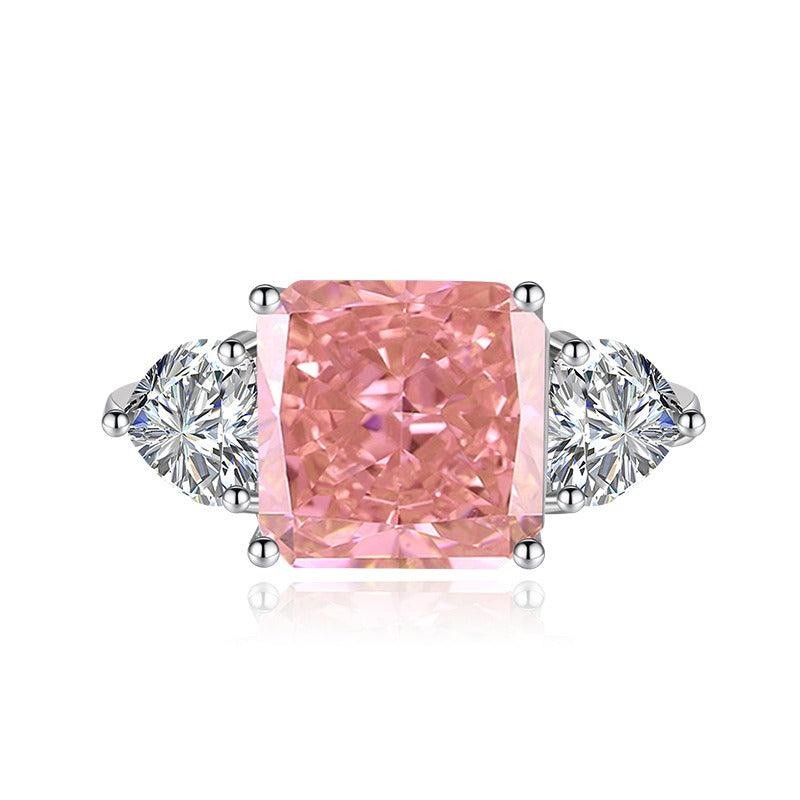 Multicolor Ice Flower Cut Square CZ Adjustable Ring, 10*10mm 8A Main Cubic Zirconia, Two Heart Side CZ, Dainty Luxe - Color: Lemon Yellow CZ