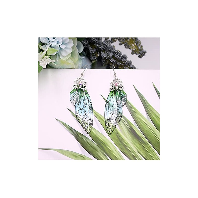 Multicolored Butterfly Wing Hook Earrings Elegant Charming Acrylic Insect Drop Earrings Crystal Dragonfly Wing Earrings for Women - Green