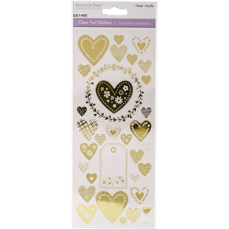 MultiCraft Clear Foil Stickers-Hearts Gold