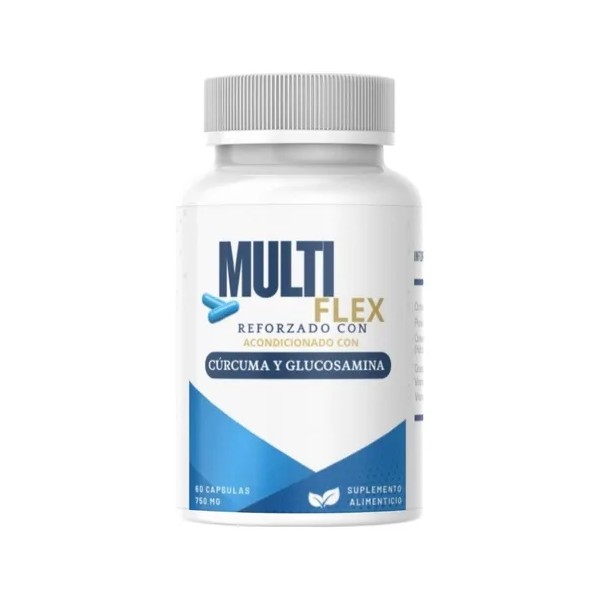 Descripción Limpia: Alivia y protege tus articulaciones con MULTI FLEX, un suplemento alimenticio especialmente formulado con cúrcuma y glucosamina, ingredientes conocidos por sus propiedades antiinflamatorias y regenerativas. Ideal para quienes buscan mejorar la movilidad, reducir el dolor articular y fortalecer cartílagos y tejidos conectivos.