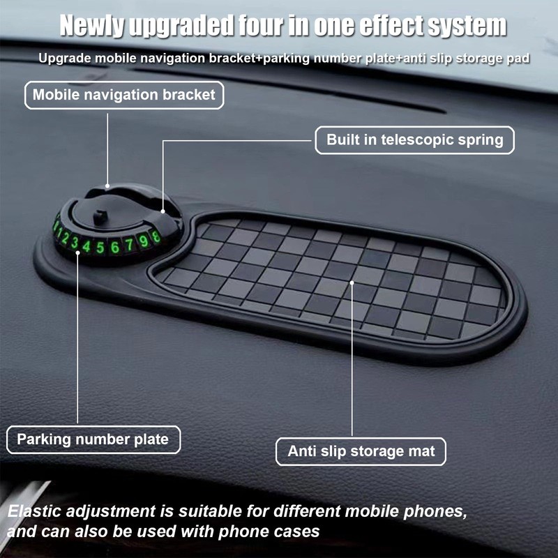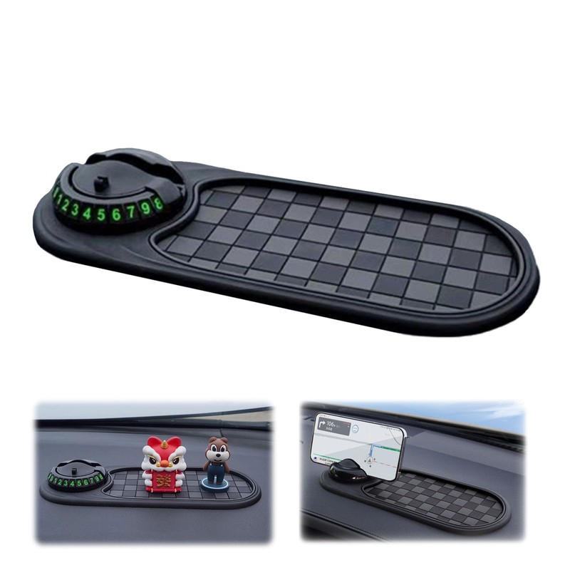 Multifunction Car Anti Slip Mat Auto Phone Holder, Universal Rotatable Anti Skid Car Dashboard Pad with Temporary Parking Number and Large Storage for Phones Sunglasses Keys Gadgets