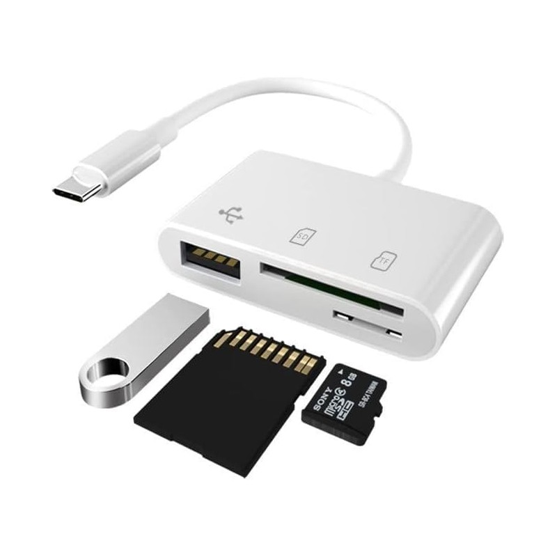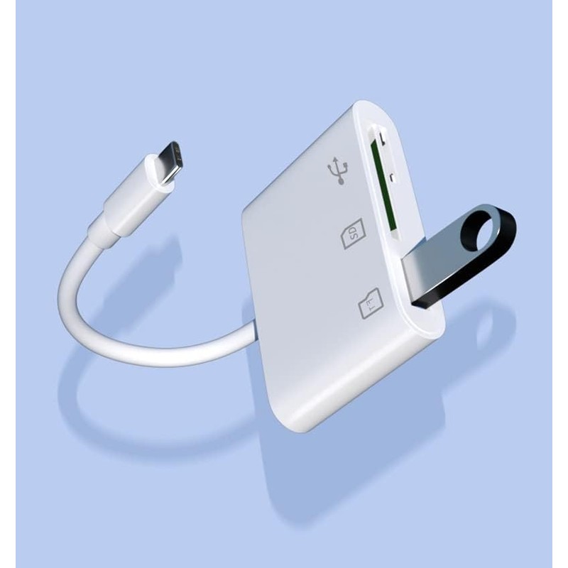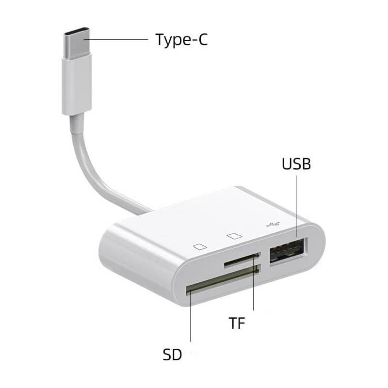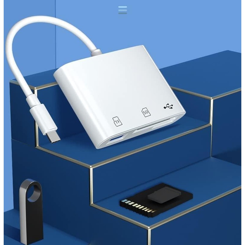 3 In1 USB SD TF USB card reader, portable, portable and easily transfer the photos and videos to your phone or other USB-C device.