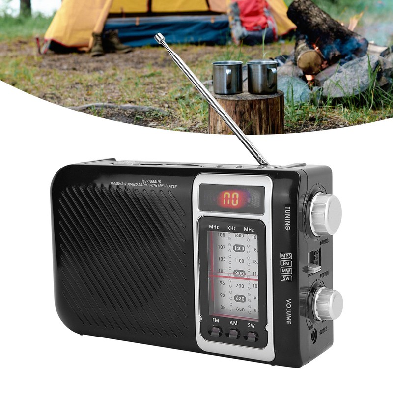 1、Support LED lights for convenient lighting, for camping, hiking, adventure and other outdoor activities. 2、Multifunctional radio, support memory card, storage card, U disk, FM, AM SW. 3、High sensitivity, high stability, low failure rate, low energy consumption. 4、360 degree rotating antenna, 5 section pull rod antenna, conducive to receiving accurate signal station. 5、Adopt high quality loudspeaker, the sound is sonorous, the sound quality is beautiful, the sound is accurate.