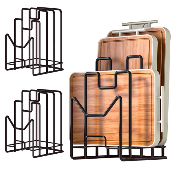 - No Installation Required: This metal cutting board organizer can stand alone without installation. Kitchen cutting board holder stand can be easily placed on a shelf inside a cabinet, or placed on your countertop, easy to put and take every item you need.