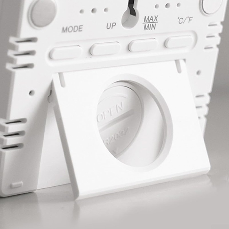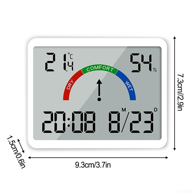 *LARGE LCD DISPLAY Measuring 3.5 x 2.7 x 0.6 inches, this digital wall clock features a large LCD display that displays the day of the week, date, time, temperature and humidity. Its clear field of vision makes it ideal for seniors and people with low vision.