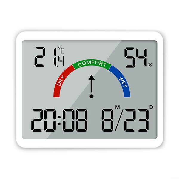 Multifunctional Electronic Clock for Temperature and Humidity, Digital Wall Clock with LCD Display Day of the Week Date Time Electronic Digital Clock for Home Office (White)