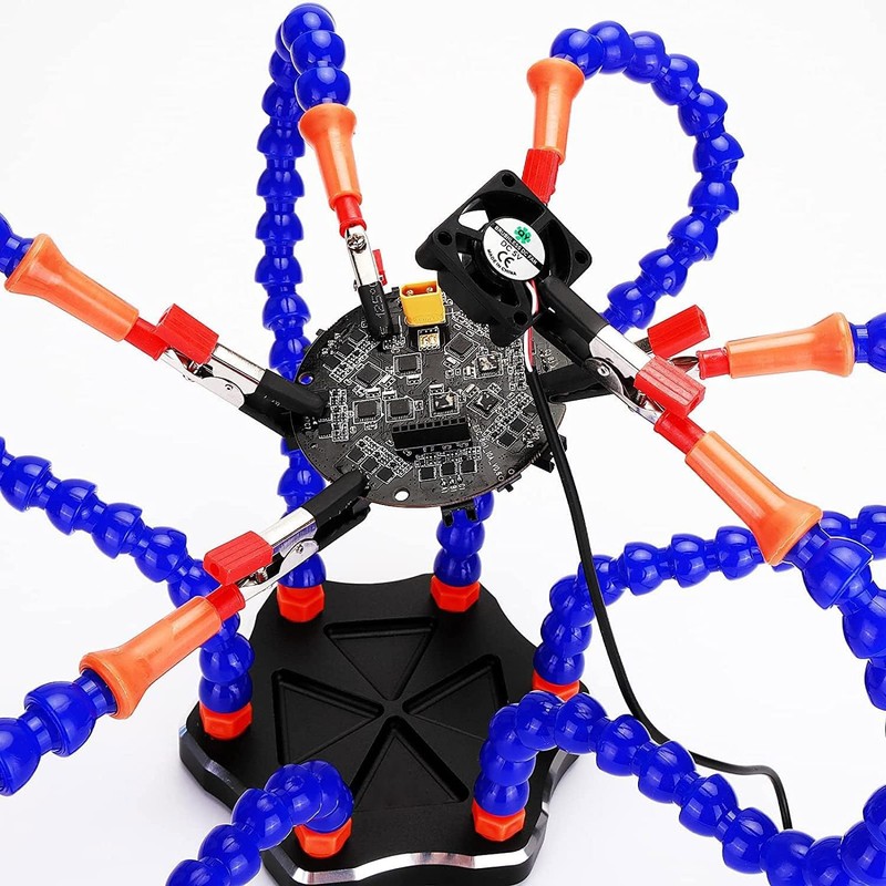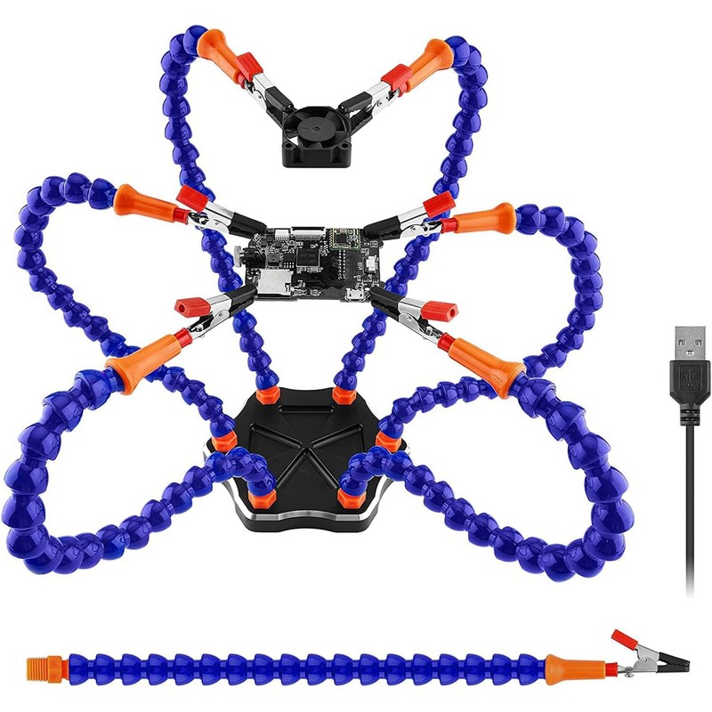 Multifunctional Soldering Tool Upgrade Flexible Help Hand Soldering Station Welding Repair Frame Soldering Tool 6 Hands 360 Degree Rotating Clip DC Fan