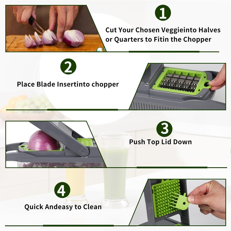 - Original Pragtone Vegetable Slicer: Our Superstar Vegetable slicer has made a splash in the international market! Easy to use, set up and clean, this vegetable cutter is our new upgrade that makes the blade thicker, harder and less prone to bending and breaking when preparing meals using our vegetable cutter. With 12 interchangeable blades that let you slice, chop and grind onion cutters in a variety of ways, you can make big, thin, thick and delicate dishes like an experienced chef, chopping, slicing and shredding your ingredients!