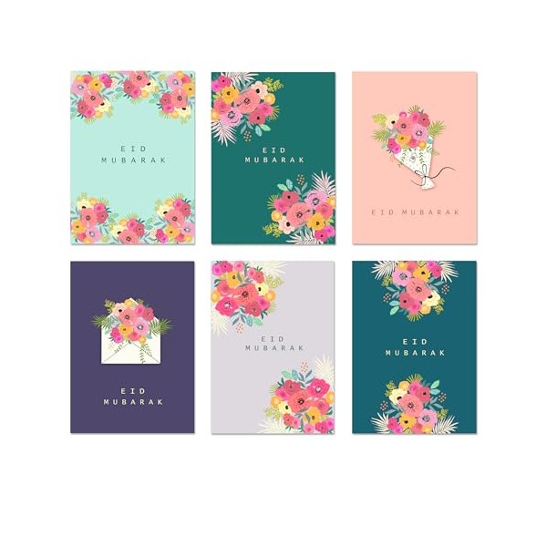 Multipack Eid Mubarak Cards - 6 Designs Fluer Collection