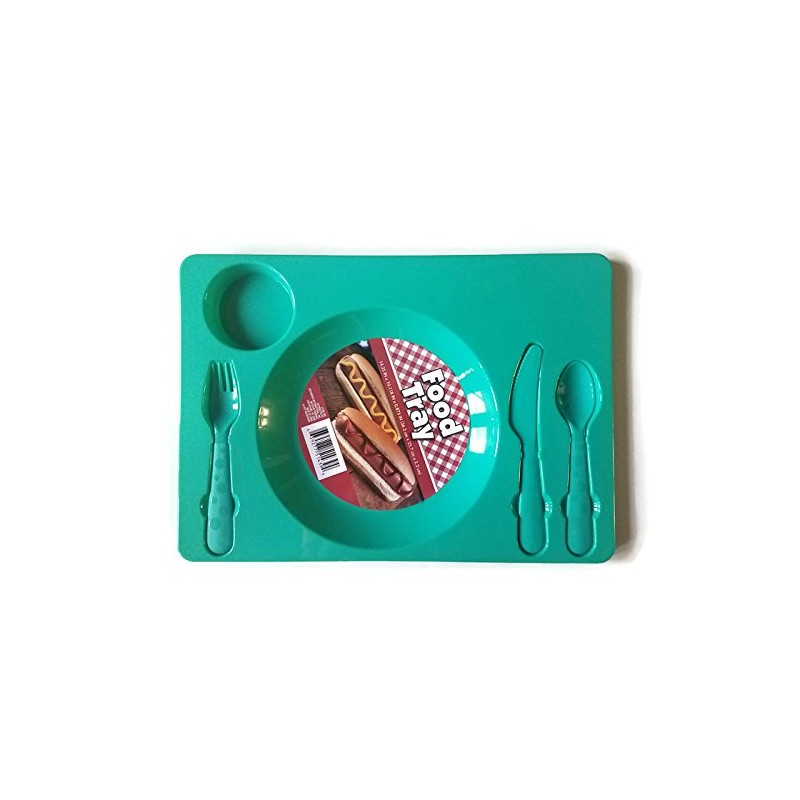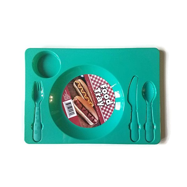 Multipack - Set of 2 Children's Compartment Food Trays with Flatware - Red/Teal