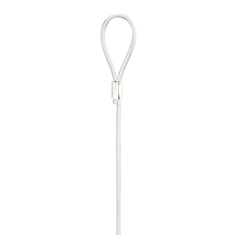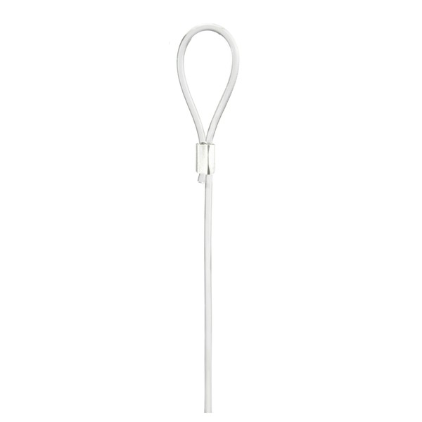 Our transparent perlon loop cord can be looped onto a moulding hook, s-hook, panel hook, drop ceiling hook, or any other open hook that will accept a loop attachment; then slide on our CAM hook, Micro hook, Rapid hook, or any other picture hanging hook that combines with a 2mm cable, and you’ve got yourself a hanging system. Our Micro hooks and Rapid hooks will hold up to 9 lbs each on these, and our CAM hooks and CAM security hooks will hold up to 45 lbs each.