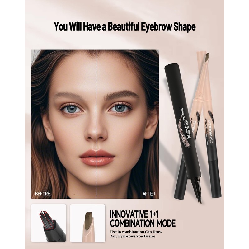 - Natural Brow Shape - The Multi-Fork Tip Square Liquid Eyebrow Pencil in the set is a godsend for creating wild brows. The unique multi-fork design accurately mimics the direction of hairs, creating a well-defined, naturally fitted wild eyebrow effect, giving you a naturally thick eyebrow.