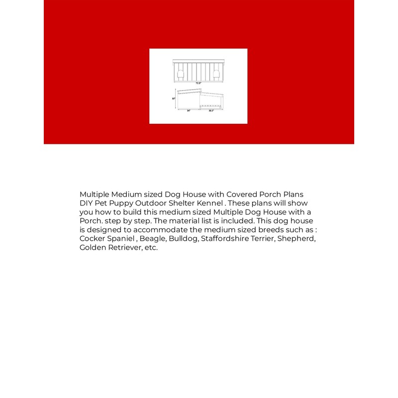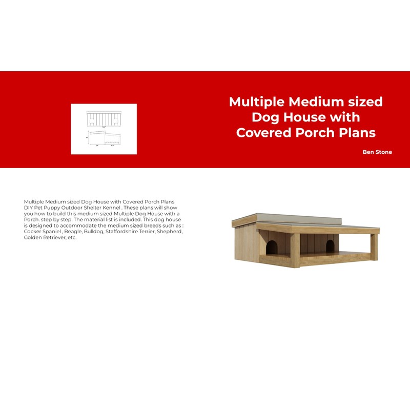 Multiple Medium Sized Dog House with Covered Porch Plans DIY Pet Puppy Outdoor Shelter Kennel