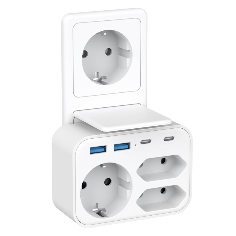 - 7-in-1 USB socket: this multi-socket without cable has three 1 Schuko socket, 2 x Euro sockets, two USB-A and two USB-C ports. Ideal for charging indoors without bulky extension cords. One socket is enough for seven devices, maximum power up to 3680W (230V/16A).