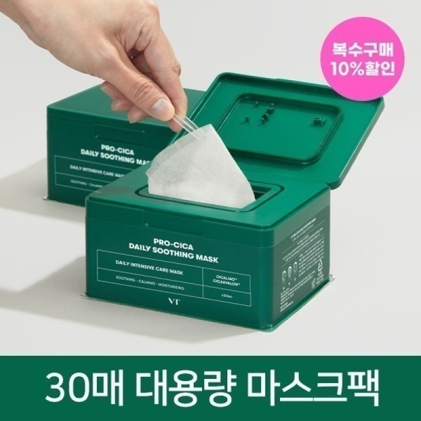 (Multiple Purchase Discount) VT Pro Cica Daily Soothing Mask 30 Sheets (Pull-out Mask Pack, Soothing Moisture Pack) / (복수구매할인) VT 프로 시카 데일리 수딩 마스크 30매 (뽑아쓰는 마스크팩 진정 수분 팩)