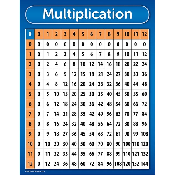 Palace Curriculum Multiplication Table Chart Poster - LAMINATED 18" x 24"