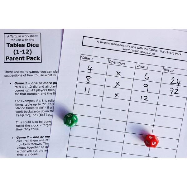 Multiplication Times Tables Dice Pack for Parents (up to 12 Times Tables)