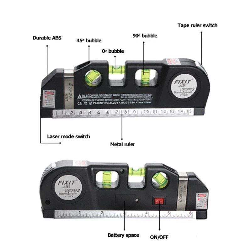 Multipurpose Laser Level Vertical Horizon Measuring Tape Aligner Metric Rulers