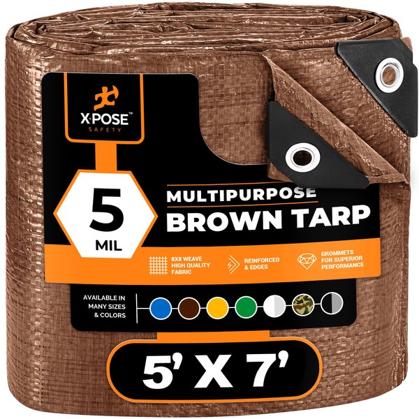 Multipurpose Protective Cover Brown Poly Tarp 5' x 7' - Durable, Water Resistant, Weather Resistant - 5 Mil Thick Polyethylene - by Xpose Safety