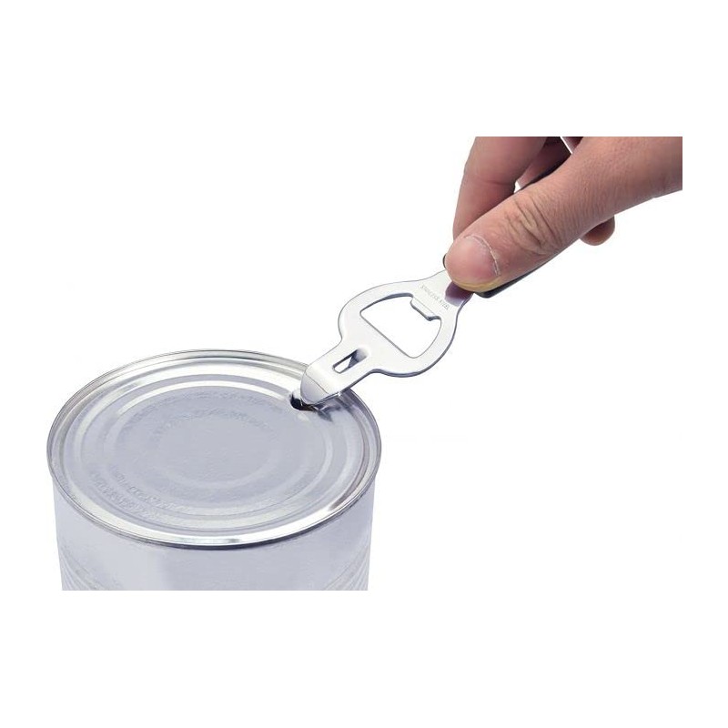- The sharp tin cutter helps to easily open up all the food cans while the trusty bottle opener does the honors for all the bottles of different drinks.