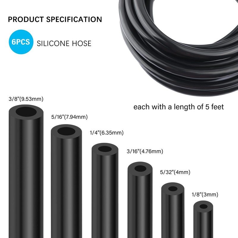Multipurpose Vacuum Line Kit,6PCS 5Ft Vacuum Hose Automotive+64PCS Vacuum Line Connectors,Max 130PSI Silicone Hose for Variety Car Piping System Automotive Replacement Vacuum Hoses (70PCS)