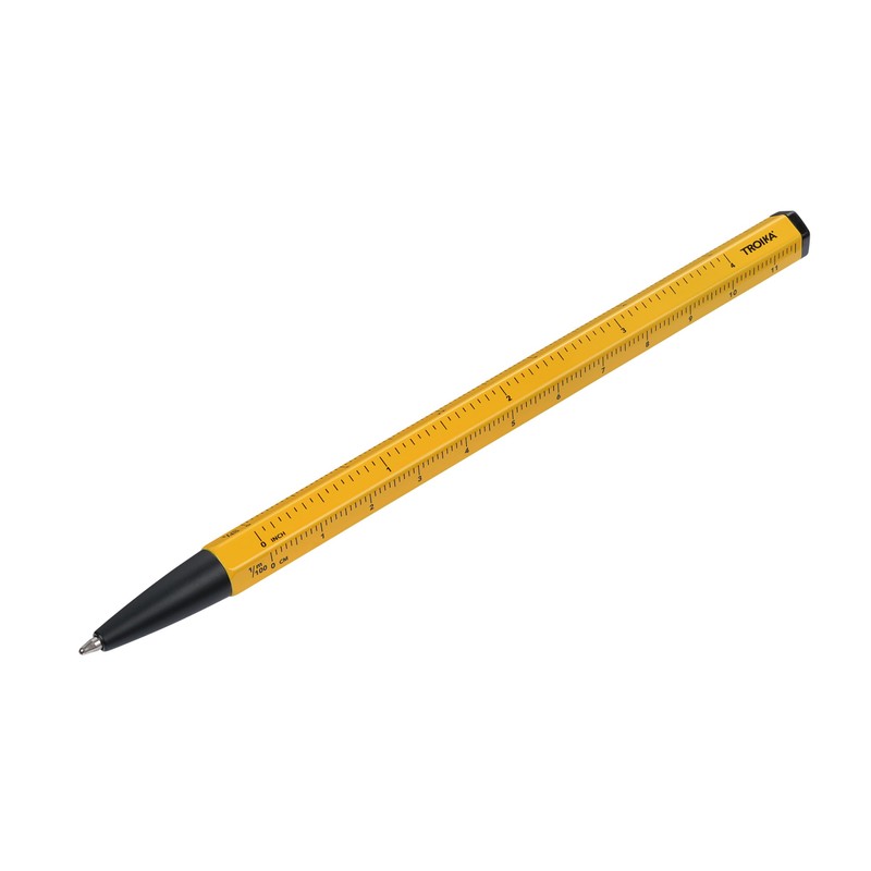 Multitasking ballpoint pen with black D1 refill – CONSTRUCTION BASIC – centimetre/inch ruler, 1:20/1:50 scale – easy refill change – aluminium, metal – black, yellow - TROIKA Original