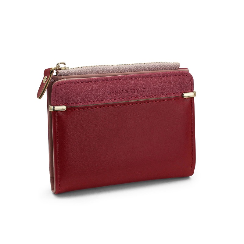 MultiValue Ladies Wallet, Short Credit Card Wallet Leather Bifold Purse with Zip and Snap Ladies Card Wallet with ID Card Window for Cards Change Coin (Red)