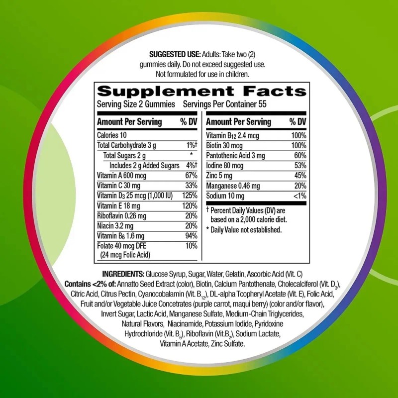 💚 Respaldo nutricional integral: Todas las vitaminas esenciales en una gomita.