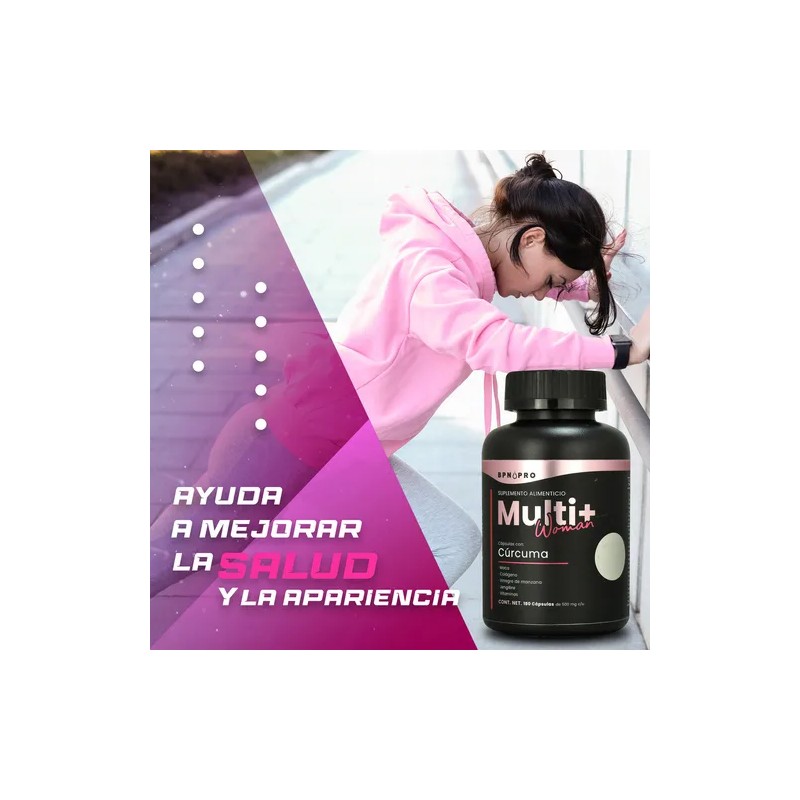 Multivitamínico Mujer Vitaminas Cúrcuma Colágeno Ácido Fólico Maca Vinagre De Sidra De Manzana Biotina Vitamina C Jengibre Pimienta Bpn Pro Multi Plus Woman 180 Cápsulas para Salud Integral