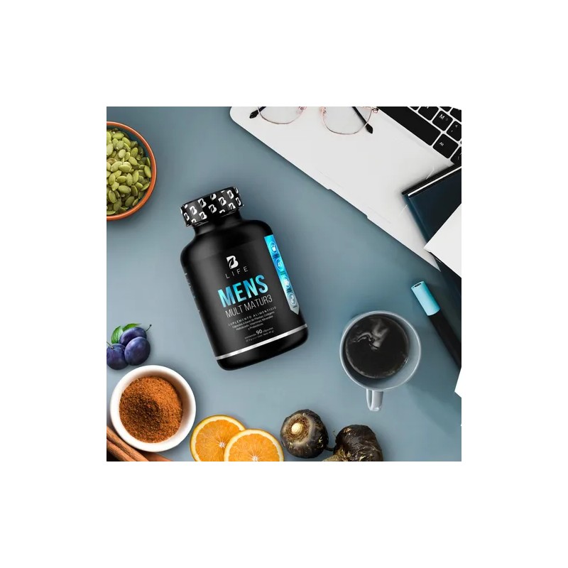 Descripción Limpia: ¡Mens Mult Matur3 B Life, tu fuerza y vitalidad! Cada cápsula de 500 mg contiene nuestra fórmula excepcional que fusiona Maca negra, Semilla de Calabaza, Creatina Monohidratada, Colágeno Hidrolizado, Calcio, Potasio, y un completo espectro de vitaminas: C, B3, B5, B12, E, B6, B2, B1, A, K y D. Además, incorporamos ingredientes clave como L-Arginina, BCAA 2:1:1, Lactobacillus Acidophilus, Ciruelo Africano, Canela, Biotina y Ácido Fólico, a diferencia de otras presentaciones que carecen de esta valiosa sinergia de ingredientes valiosos para el hombre maduro. Contiene 90 cápsulas.