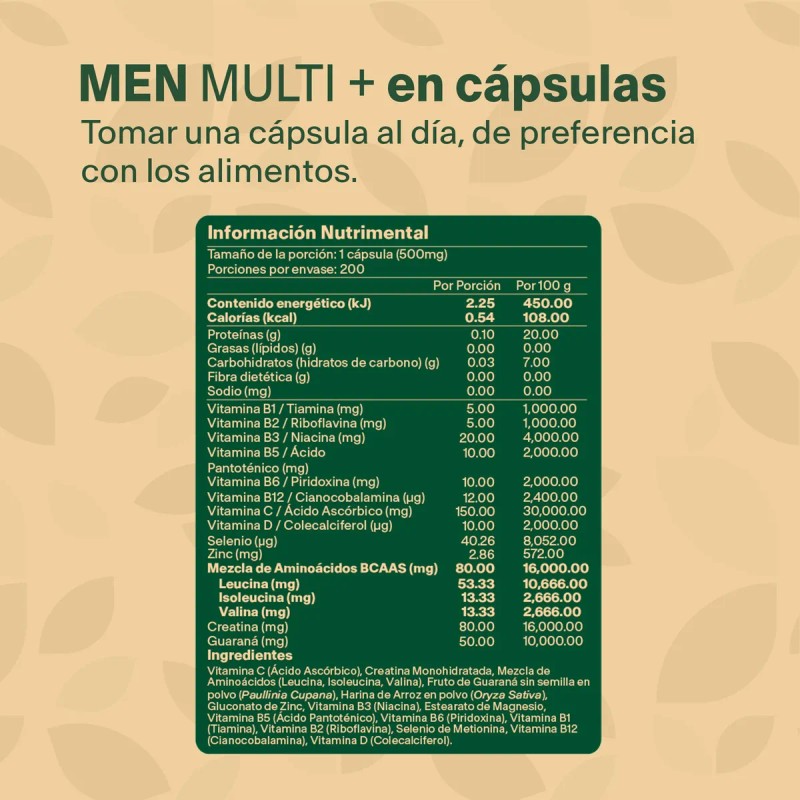 Multivitamínico para Hombre Men Multi+ con Creatina y BCAAs | 200 Cápsulas | ...