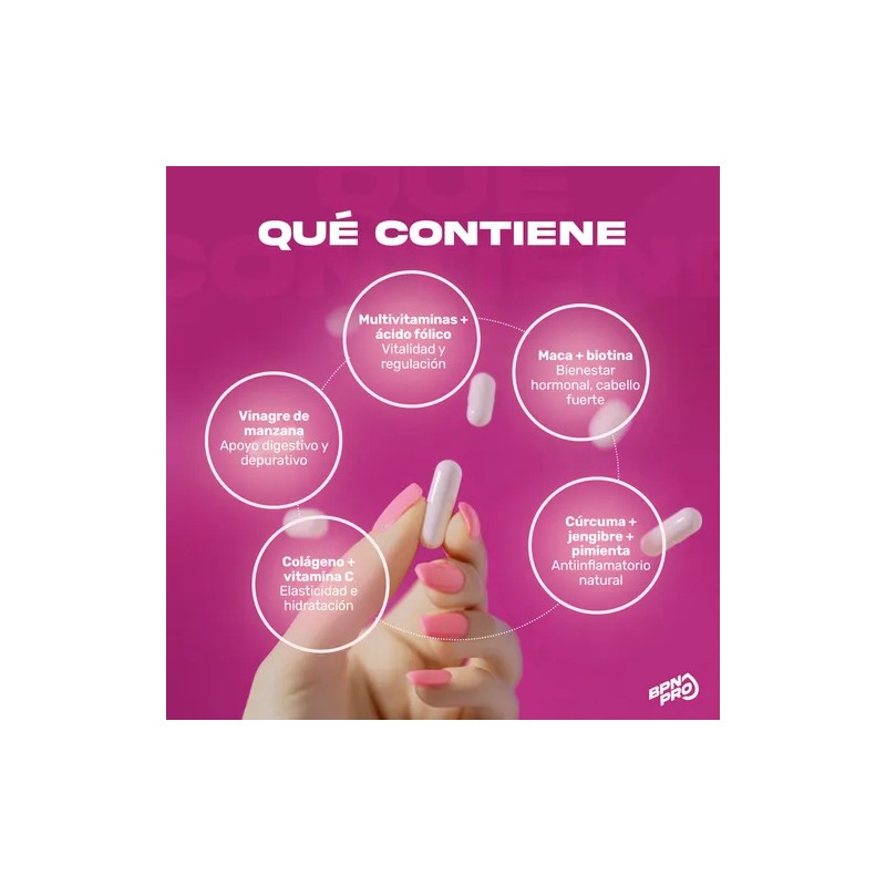 Proporciona las vitaminas necesarias para el funcionamiento correcto de la mujer.