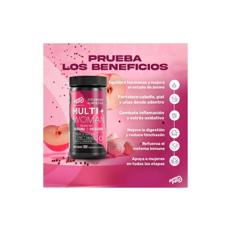 Multi plus Woman; Es un multivitamínico formulado especialmente para la mujer que además te ayudará a bajar de peso ya que gracias al vinagre de sidra de manzana, pimienta negra y jengibre inhiben el apetito, lo que te ayudará a no sentir tanta hambre durante el día.