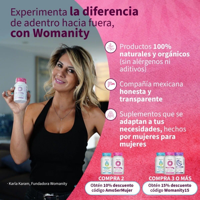 - Como consumidoras de suplementos habíamos probado de todo. La verdad es que hay muchas “fórmulas mágicas” en el mercado que aseguran mejorar tu salud de un día para otro, sin garantías ni resultados reales. Si a esto le añadimos que muchos suplementos contienen miles de ingredientes, pero poco gramaje, aditivos (como azúcar y soya) y cápsulas gigantes difíciles de tragar, no es extraño que dejáramos de confiar en estos productos. Por eso, creamos Womanity. Una marca de suplementos que, además de ser 100% transparente, se adapta a nuestras necesidades.