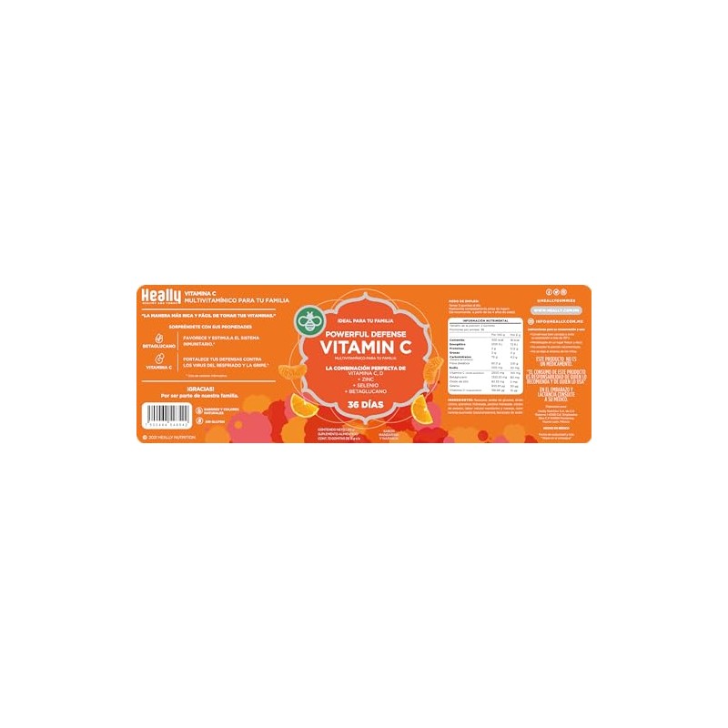 Acerca de este artículo ✔ PARA UN MAYOR CONSUMO DE VITAMINA C – Nuestro multivitamínico es perfecto para complementar tu alimentación en cualquier época del año y gozar de una vida más sana y alegre. Es por eso que con sólo 2 gomitas al día de nuestro multivitamínico Powerful Defense sabor mandarina y naranja, tendrás ese boost de Vitamina C que necesitas. ✔ INGREDIENTES ACTIVOS PARA UNA VIDA SALUDABLE – Nuestro multivitamínicos están hechos con la mezcla ideal de ingredientes necesarios para darte una apariencia más fresca y con más vitalidad todos los días. El multivitamínico para Powerful Defense incluye Zinc, Selenio, Betaglucano, Vitamina C (Ácido Ascórbico) y Vitamina D (Colecalciferol). ✔ SÓLO CON INGREDIENTES NATURALES– Todos los multivitamínicos Heally están hechos con ingredientes 100% naturales y bajo los más altos estándares de calidad. Son libres de gluten, azúcares añadidos, grasas, colorantes y saborizantes artificiales.