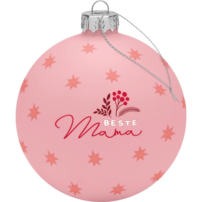 - Glass ball with saying: Christmas bauble made of glass, with ribbon for hanging, diameter 8 cl, for decorating your home or for the Christmas tree. Glass ball with saying "Beste Mama", packaged in Christmas designed gift box.