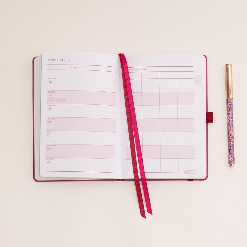 MUM's Diary 2026 (Raspberry) - Medium sized 2026 diary - Jan to Dec 2026 Week-To-View with 4 column GRID layout - organise the scheduling chaos of busy family life