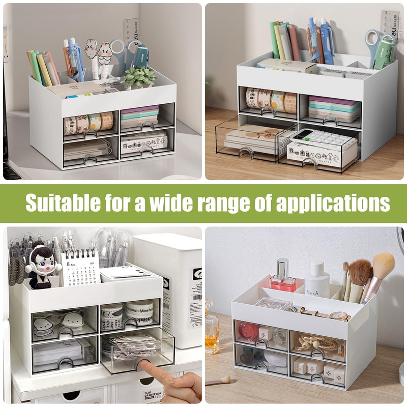 - Der Utensilienschalen Schreibtisch Organizer ist ein langlebiges und umweltfreundliches ABS-Produkt, das mit seinen 4 Fächern und 4 transparenten Schubladen Platz auf dem Desktop spart. Geeignet für Büro, Schule, Wohnzimmer, Ankleidezimmer und weitere Räume und als tolles Geschenk für Studenten, Lehrer und Büroangestellte.
