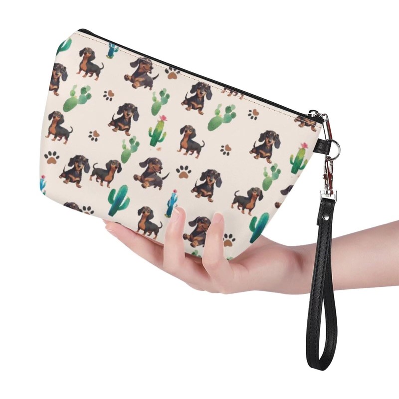 Mumeson Womens Cosmetic Bag Tropical Dachshund and Cactus Print Makeup Bag Coin Purse Small Handbag Toiletry Bag