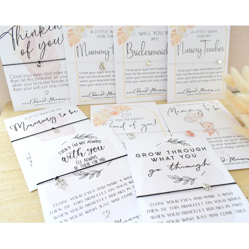 A wish bracelet is intended to be tied upon the wrist whilst making a wish and over time when the cord breaks away the idea is that wish will come true.