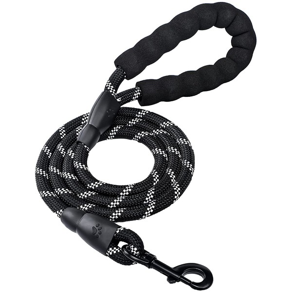 Mumoo Bear 5 Ft Strong Dog Leash With Comfortable Padded Handle And Highly Reflective Threads Dog Leashes For Medium And Large Dogs (Black)