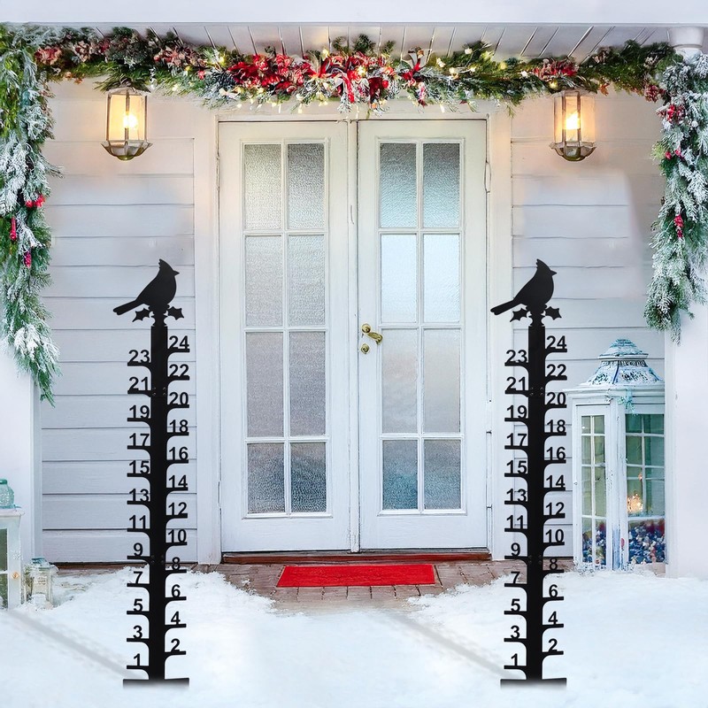 MUMTOP 2 Pack Snow Gauge Outdoor, 24 Inch Iron Art Snowfall Measuring Stick, Cardinal Winter Yard Stake for Garden Lawn Christmas Decoration Gift